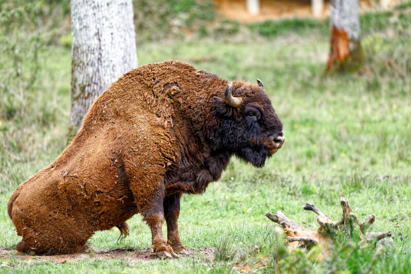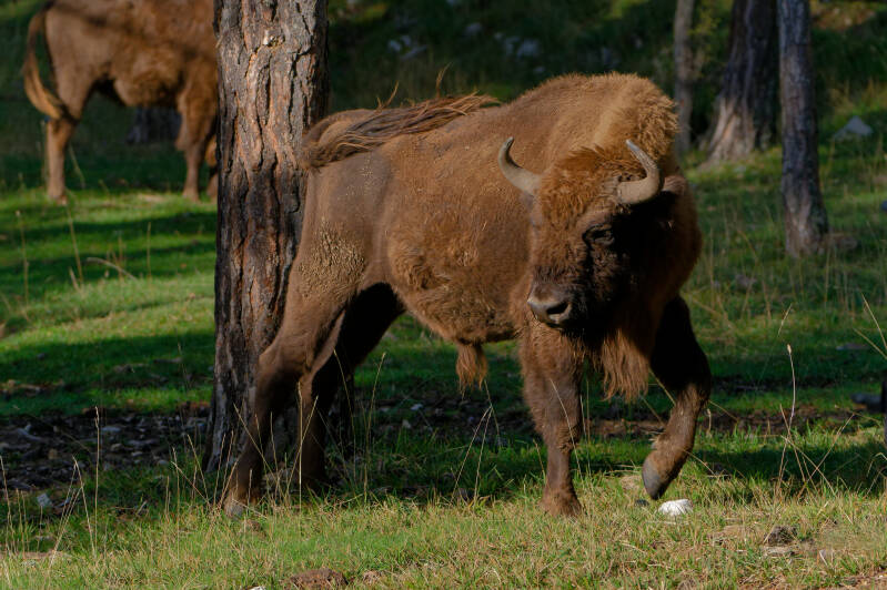 - Jeune mâle 700-800 kgs env.Le bison d'Europe (Bison bonasus) est légèrement moins impressionnant que son cousin d'outre-Atlantique, le Bison bison, mais il est quand même ce qu'on appelle un grand gabarit : 2 mètres au garrot pour 350 à 600 kg pour les femelles et 600 kg à une tonne pour les mâles