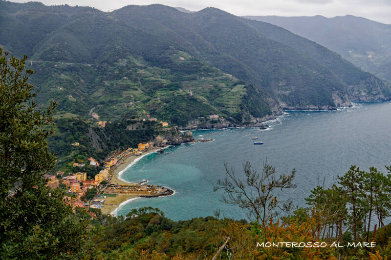 Le sentier entre LEVANTO à MONTEROSSO-AL-MARE surplombe les eaux bleues de la mer Méditerranée, au coeur d'une forêt mêlant les pins aux oliviers et où la luxuriante végétation méditerranéenne a la part belle. Long d'environ 7/8 kilomètres, il est réalisable en 3 heures environ, les montées et descentes pouvant s'avérer assez techniques dénivelé de 310 mètres env.. Il faut être équipé.