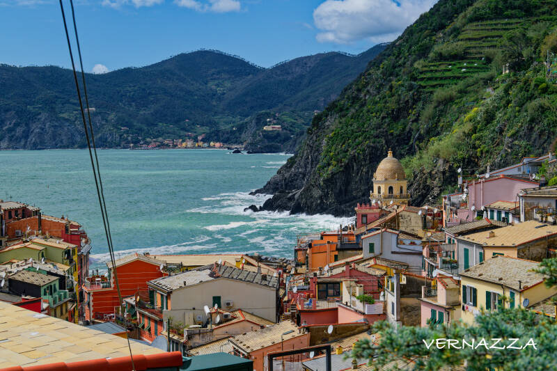 VERNAZZA, 2 ème village, très beau village toujours avec ces ruelles et ces maisons colorées couleur pastel. Vue du sentier nous venions de CORNIGLIA :